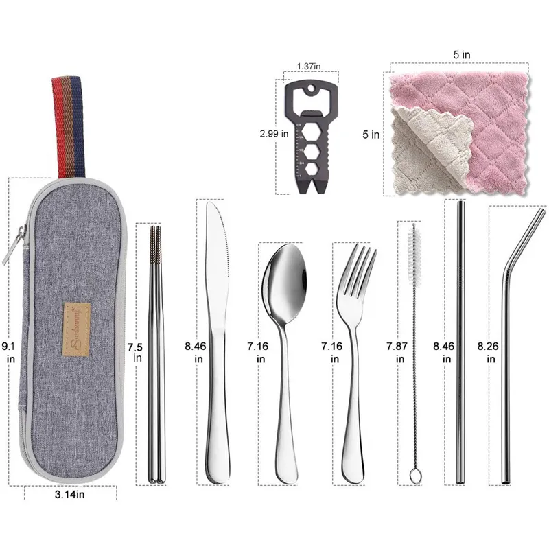 Ce set de couverts en bois est l’alternative parfaite au plastique jetable ! Il comprend une fourchette, une cuillère et deux baguettes, le tout en bois naturel (Kuriki), donc 100% écologique et sans produits chimiques. Les couverts sont légers, avec une prise en main ergonomique et antidérapante, vraiment agréables à utiliser. Ils se rangent facilement dans leur pochette (incluse ? à vérifier dans la description originale, mais souvent oui), donc parfaits pour les lunchbox au bureau, les pique-niques, les voyages en camping, ou même pour les repas à la maison quand on veut éviter le métal. Et le top : ils passent au lave-vaisselle (ou se lavent facilement à l’eau savonneuse) et sont réutilisables longtemps. Dimensions approximatives : cuillère et fourchette ~18,5 cm, baguettes ~23 cm. Un investissement malin pour réduire ses déchets tout en ayant du style. Un must-have pour les écolos pratiques ! Pense juste à bien les sécher après lavage pour prolonger leur durée de vie.